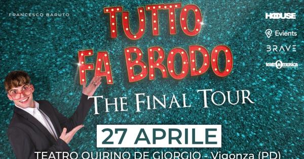 Il 27 Aprile alle 21:30 Francesco Baruto sarà al al Teatro Quirino De Giorgio di Vigonza con il suo "Tutto fa brodo show".