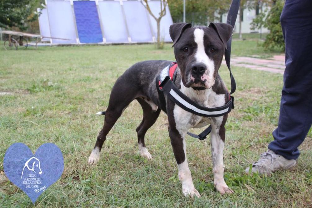 - Harvey è un meticcio Amstaff maschio, sterilizzato, taglia media. Si lega moltissimo a chi passa del tempo con lui. Va a passeggio al guinzaglio e non apprezza la compagnia dei propri simili. Per lui stiamo cercando una famiglia composta da persone adulte che sappiano gestire correttamente i terrier tipo bull e che lo tenga come unico cane. Venite qualche volta in Rifugio per fare conoscenza, poi potrete andare a casa tutti insieme!