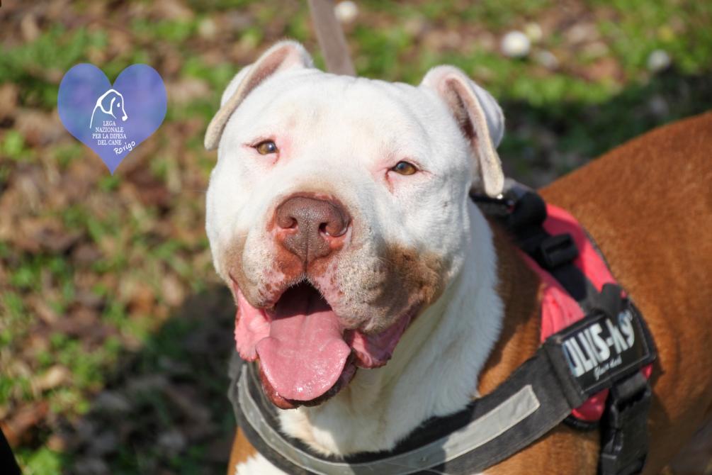 - Harvey è un meticcio Amstaff maschio, sterilizzato, taglia media. Si lega moltissimo a chi passa del tempo con lui. Va a passeggio al guinzaglio e non apprezza la compagnia dei propri simili. Per lui stiamo cercando una famiglia composta da persone adulte che sappiano gestire correttamente i terrier tipo bull e che lo tenga come unico cane. Venite qualche volta in Rifugio per fare conoscenza, poi potrete andare a casa tutti insieme!
