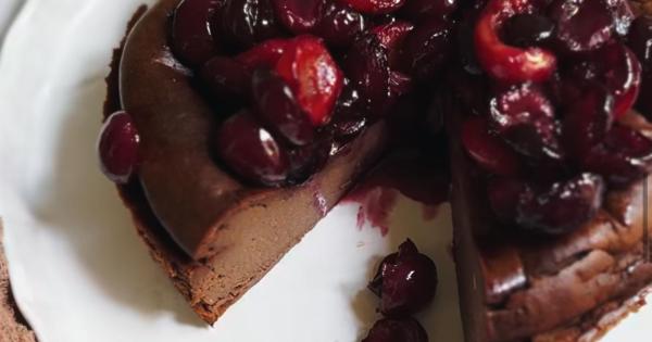 Trasferite il composto ottenuto in una tortiera e cuocete a 180 gradi per circa 40/45 minuti. Nel frattempo cuocete per qualche minuto in una padella le ciliegie denocciolate assieme allo zucchero.