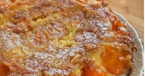 Versate il composto sulle albicocche, sbattete la teglia per eliminare l'aria e cuocete in forno statico già caldo per circa 45 minuti a 180.
